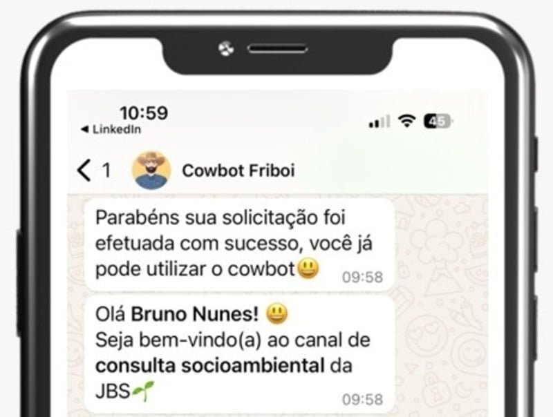 Lançado há pouco mais de um ano, o ‘Cowbot’, ferramenta gratuita da JBS para consultas socioambientais de propriedades rurais, já ultrapassou a marca de 30 mil análises realizadas em todo o Brasil. O sistema, que funciona via WhatsApp, permite que produtores verifiquem rapidamente a conformidade de fazendas antes de negociações, reforçando a transparência e a sustentabilidade na cadeia da pecuária e de outras commodities agrícolas.