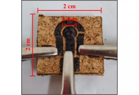 Com o uso de laser, foram feitas marcações na cortiça que transformaram sua superfície em grafeno, um material derivado do carbono com alta capacidade de conduzir eletricidade. Esse processo é limpo, não utiliza reagentes tóxicos e permite criar caminhos condutores diretamente na cortiça.